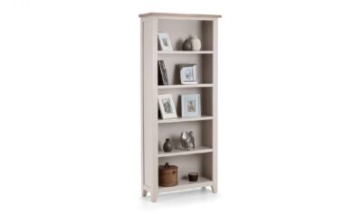 An elegant Tall Bookcase, presented in an immaculate painted, soft Grey finish with beautiful pale oak top, crafted from a combination of high grade White Oak solids and veneers. This stylish piece offers ample shelf space and holds up to A4 box file size. The combination of superior quality materials