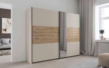 Sophisticated two-tone design in champagne and artisan oak, blending understated elegance with modern luxury. Mirrored 160cm wardrobe enhances both space and light, while offering ample storage for a refined lifestyle. Dimensions: W218 x D59 x H210 cm You can choose your delivery slot and timing at checkout. We also offer