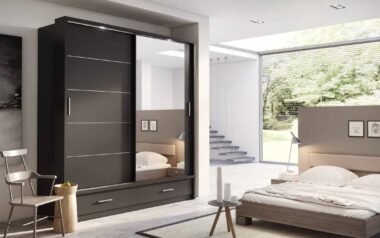 Anita has two sliding doors, one completely mirrored, and a pair of drawers. It impresses with its immaculate finish, flawless craftsmanship and versatile inside-layout. Storage options, apart from the drawers, include six compartments and two hanging sections. Dimensions: W200cm x H215cm x D63cm Includes five shelves Available in Grey, White