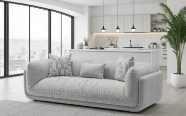 The Brookes Sofa is available in two core colours – Grey and Beige, and comes as a 2 or 3 seater. Fabric-upholstered with a solid wood frame, a full-back design and a 5-year structural frame guarantee. Dimensions: (2-seater) W195 × D105 × H75 cm , (3-seater) W240 × D105 ×