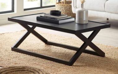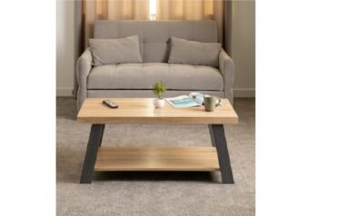 Bring a warm and stylish touch to your living room with this beautiful coffee table. The natural oak finish highlights the wood’s rich grain, adding texture and character to the piece. Its bold cross-shaped base creates a striking silhouette that captures attention. Offering ample surface space for drinks, books, or