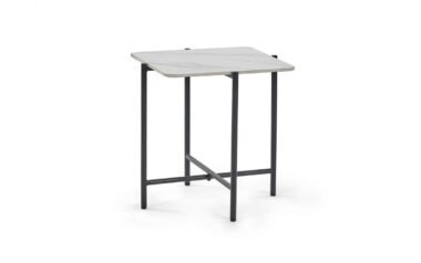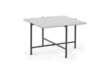 The Salina Coffee Table offers a timeless design that adds charm and style to any room. Featuring a white marble sintered stone square top sat on a black metal base. An impressive centrepiece to your living space. White marble sintered stone top with a black metal base Adds charm and