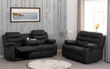 Rome Recliner Sofa Collection Available in Grey Faux Leather, Grey Cord Fabric and Black Faux Leather Foam-filled seat cushions, for durability and longevity Soft fibre-filled back cushions for extra support and comfort Manual recliner, two stage for comfort. Medium firmness. Dimensions: 3 Seater: W200 x D80 x H100 cm 2