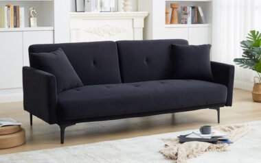 Add a touch of elegance to your space with this modern sofa bed. Sleek and versatile, it combines luxurious comfort with practical functionality for contemporary living. Dimensions: Sofa – L191 x D92 cm , Bed – W191 x D102 cm. Available in a Grey Fabric finish or a Navy Velvet