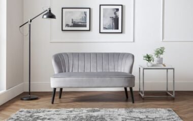 Excelling in elegance, the gorgeous Coconut 2-Seater is designed with a beautiful, scalloped back in a soft velvet upholstery. Fashioned in the choice of a stunning blue or light grey colourway, this classy 2-seater stands glamorously on black tapered legs, adding a boudoir feel to any room. Eye-catching Blue or