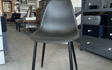 - Trendy Chest of Drawers – grey painted wood with tinted black mirror inserts.