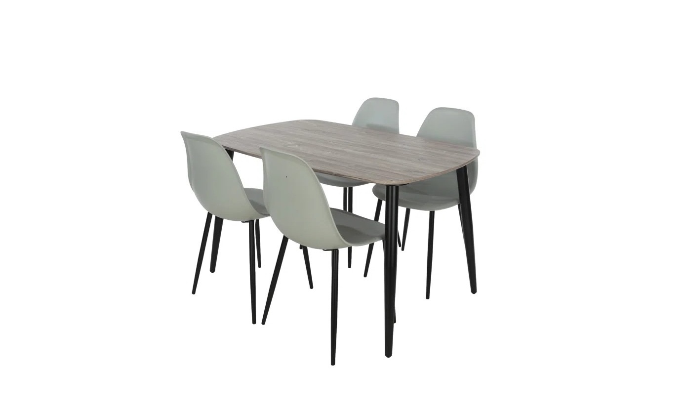• Accompanied by 4 chairs featuring striking black legs