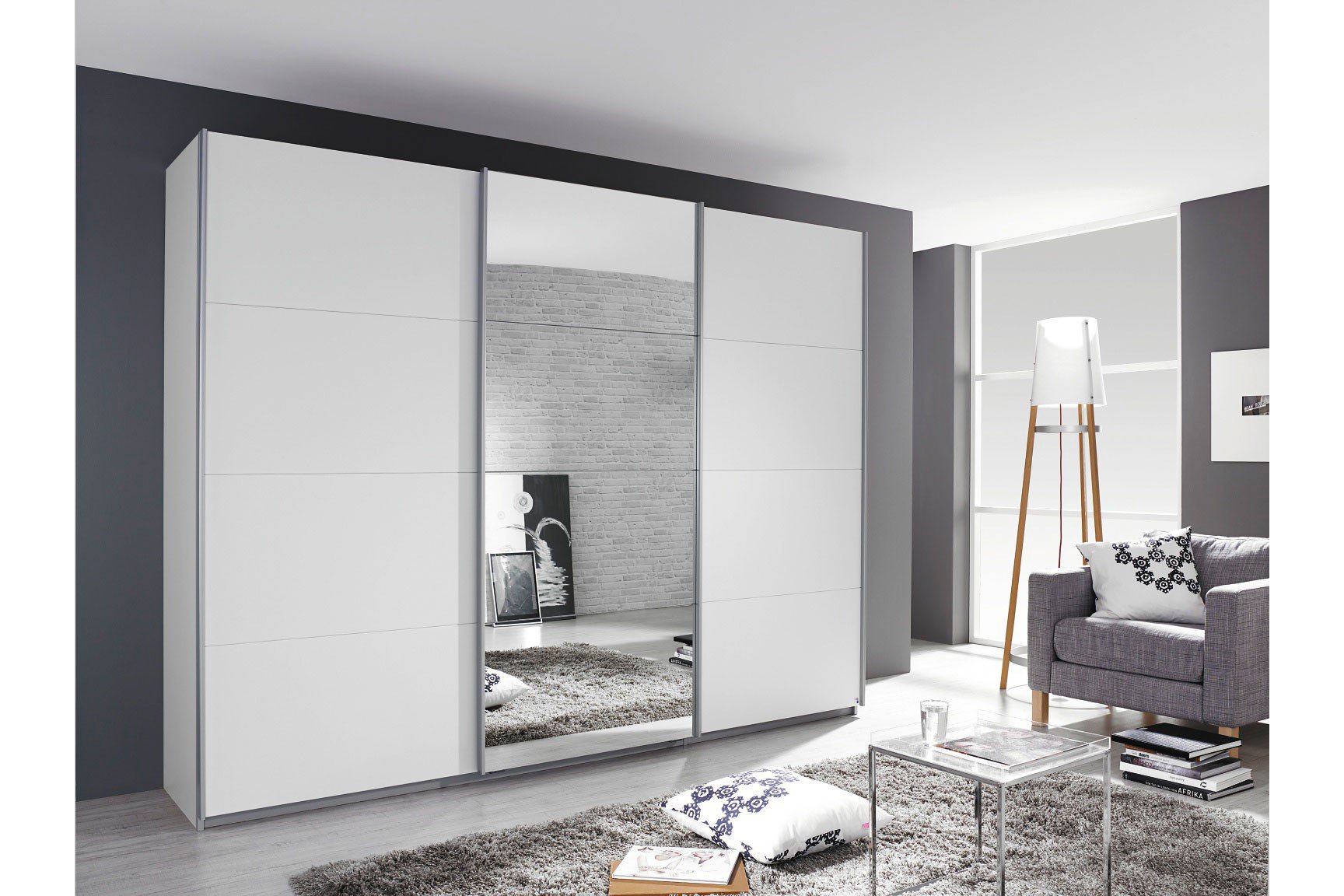 - Front and carcass colour in alpine white with center mirror aluminium coloured handle strips.