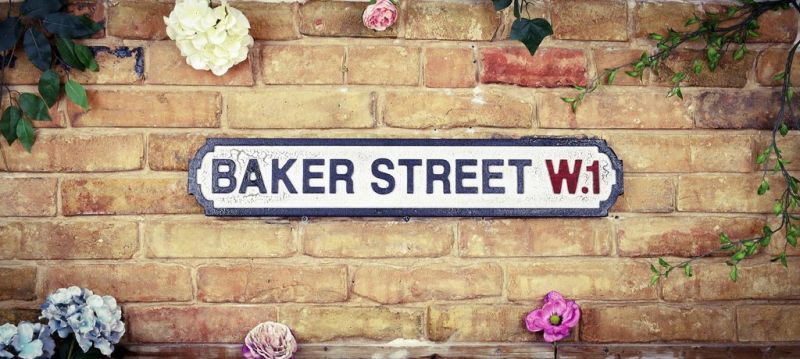 • A beautiful and original location sign “Baker Street” finished in a vintage rustic look