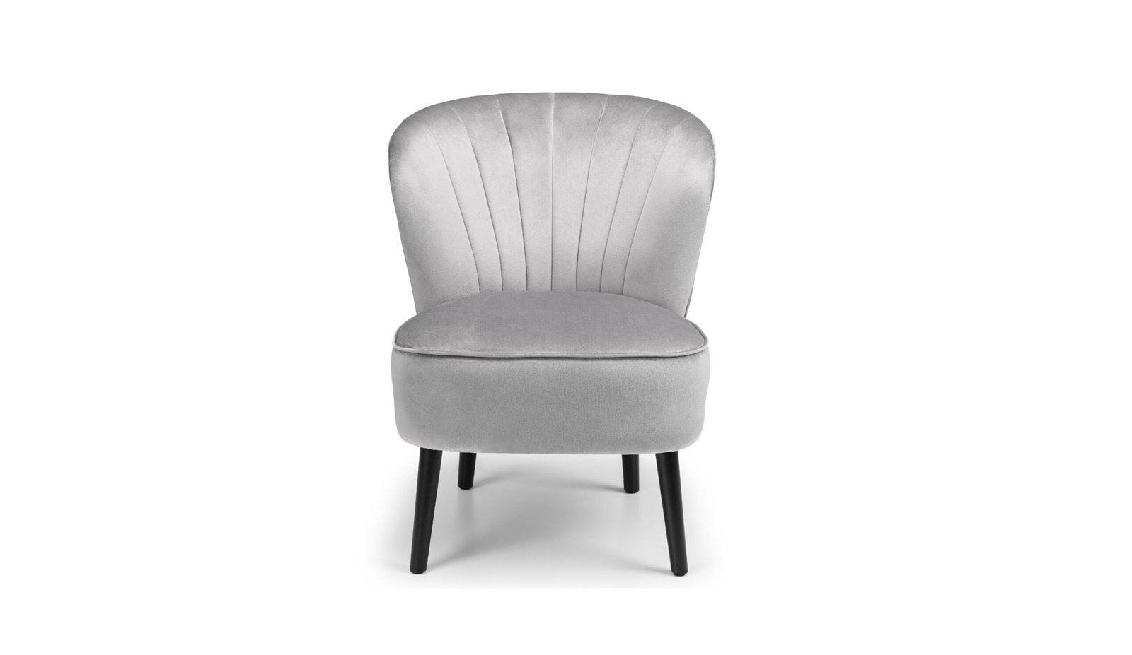 - Excelling in elegance, the gorgeous Coconut Accent Chair is designed with a beautiful scalloped back in a soft velvet upholstery. Fashioned in the choice of a stunning blue or light grey colourway, this classy accent chair stands glamorously on black tapered legs adding a boudoir feel to any room