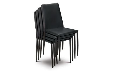 - Our modern styled Enza chair has great comfort and stacks away for compact storage.
