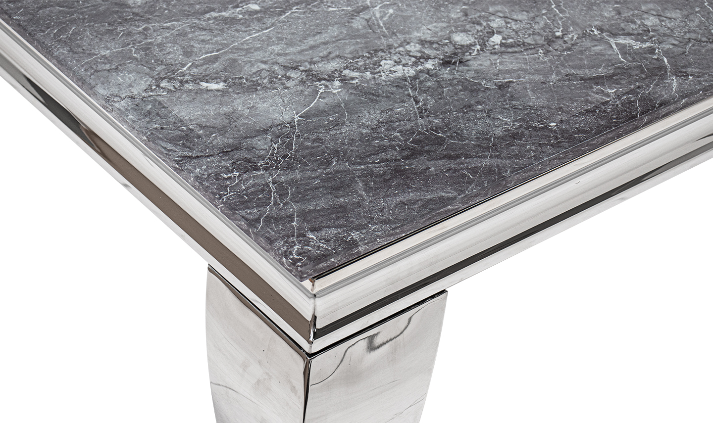 - The Fabine Marble coffee table is classic and elegant with contemporary design undertones. Featuring marbled glass tops and polished steel frames.