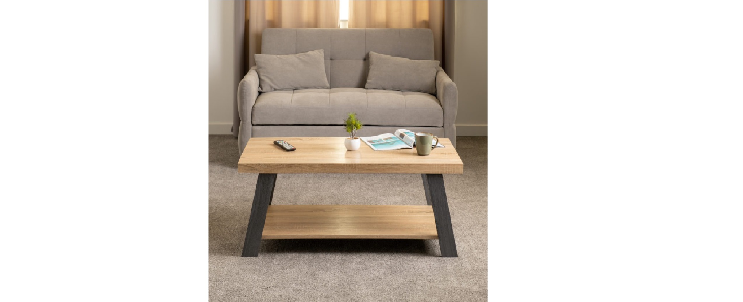 Wooden effect coffee table with an under shelf finished in grey/sonoma effect.