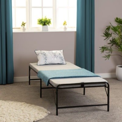 - The Haden Folding Guest Bed is a practical solution for overnight guests, offering both comfort and convenience. This bed folds effortlessly for easy storage when not in use. Its compact size and foldable frame make it ideal for small spaces, while the cushioned mattress ensures a restful sleep. Built with durability in mind, the metal frame provides sturdy support. Whether you need an extra sleeping option or want to be prepared for surprise visitors, the Haden Folding Guest Bed is a stylish and functional addition to any home.