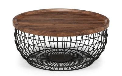 - Walnut effect top with a black wire base