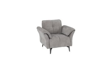 - Stylish Kenza Accent Chair upholstered in grey fabric with a solid wooden frame, combining contemporary design with classic comfort — perfect for living rooms, bedrooms or reading nooks.