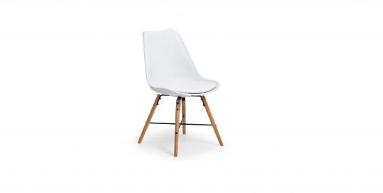 • The Kiwi Dining Chair features a curved design that conforms to the natural curve of the spine, paired with a high-quality padded seat allowing you to reach maximum comfort.  Featuring a white, easily-cleaned seat and oak effect legs, with an steel cross bar giving this chair a modern industrial feel. Available in three colour options.
