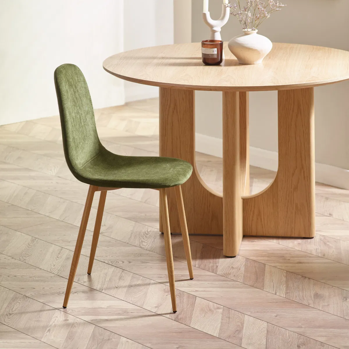 - Lotty dining chair available in beige chenille, grey chenille, olive green chenille, or denim blue chenille — soft, contemporary seating that enhances modern dining spaces.