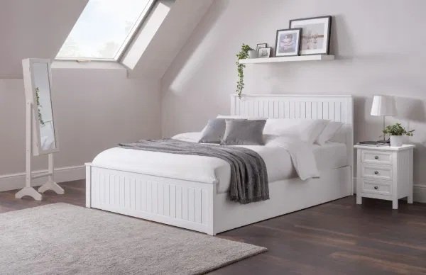 • The Manhattan Ottoman Bed will bring a touch of elegance to your bedroom. With a classic aesthetic, this bed can suit various decorative styles and create a calm, peaceful environment for a good night’s sleep. The ottoman lifts easily and provides a large amount of storage – perfect for bedding and other items.