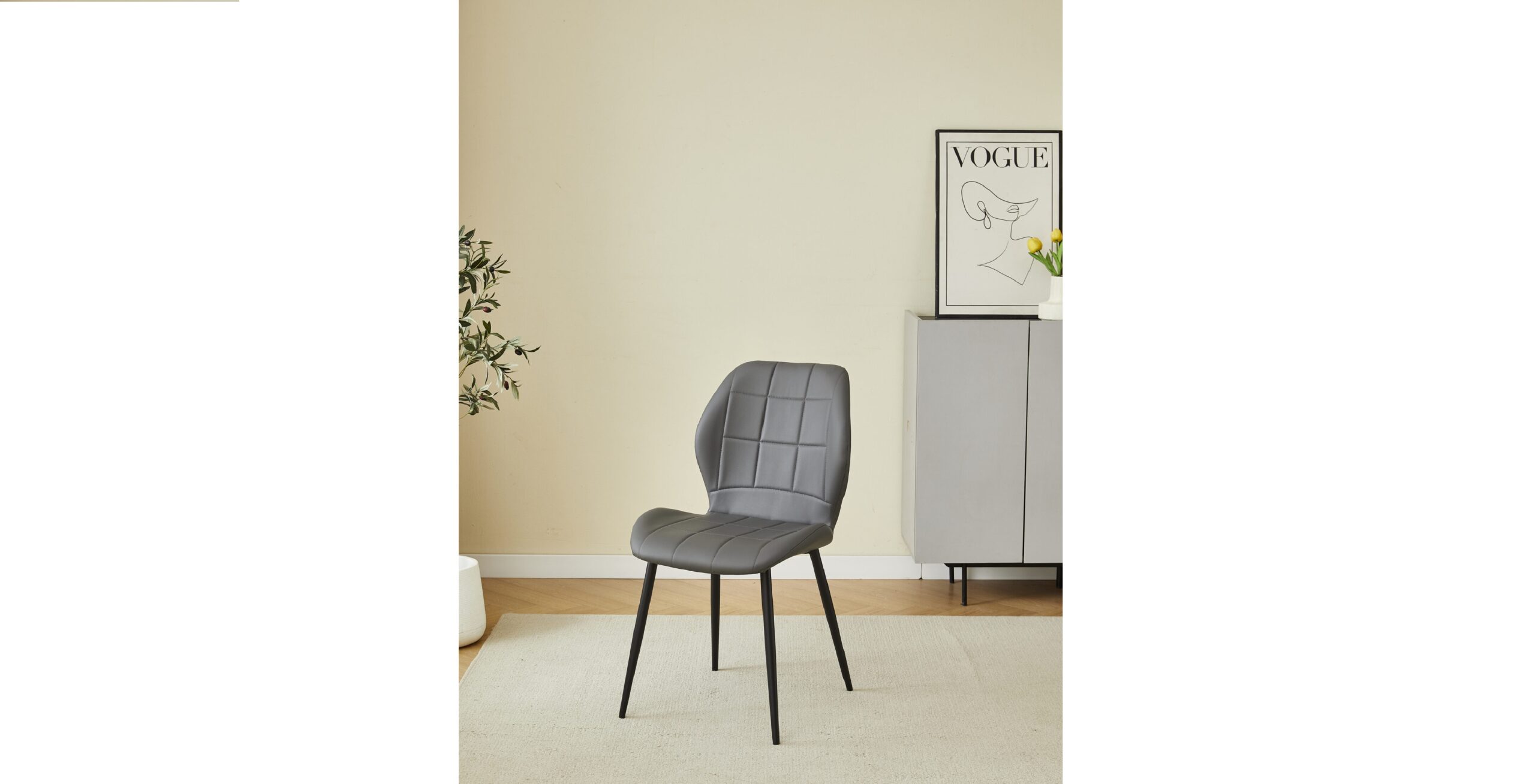 Solid dining chair available in a PU Leather Effect Dark Grey colour