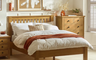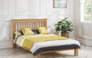 An imposing shaker style bed frame made from solid white oak and oak veneers. The timeless design complements both contemporary and traditional decor styles. This is an extremely robust bed that adds real presence to any bedroom. A fully sprung slatted sleeping base ensures great comfort and prolonged mattress life.