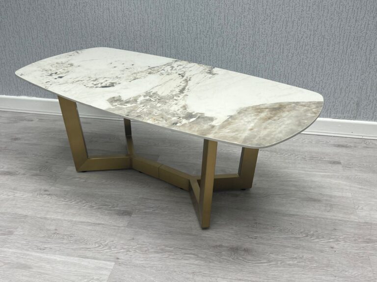 - The Positano Coffee Table features a stunning cream and gold ceramic top that adds instant luxury to any space.