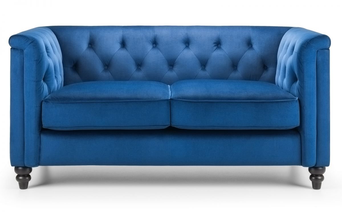 • With impeccable tailoring, the Sandra Sofa collection brings timeless elegance to your living area – featuring a buttoned back, contrasting black legs, and a beautiful blue velvet finish – providing an inviting feel with a classic look.