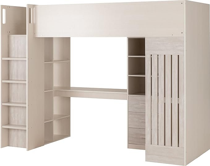 - The elevated design maximizes space and creates an open area underneath, perfect for a study or additional storage.