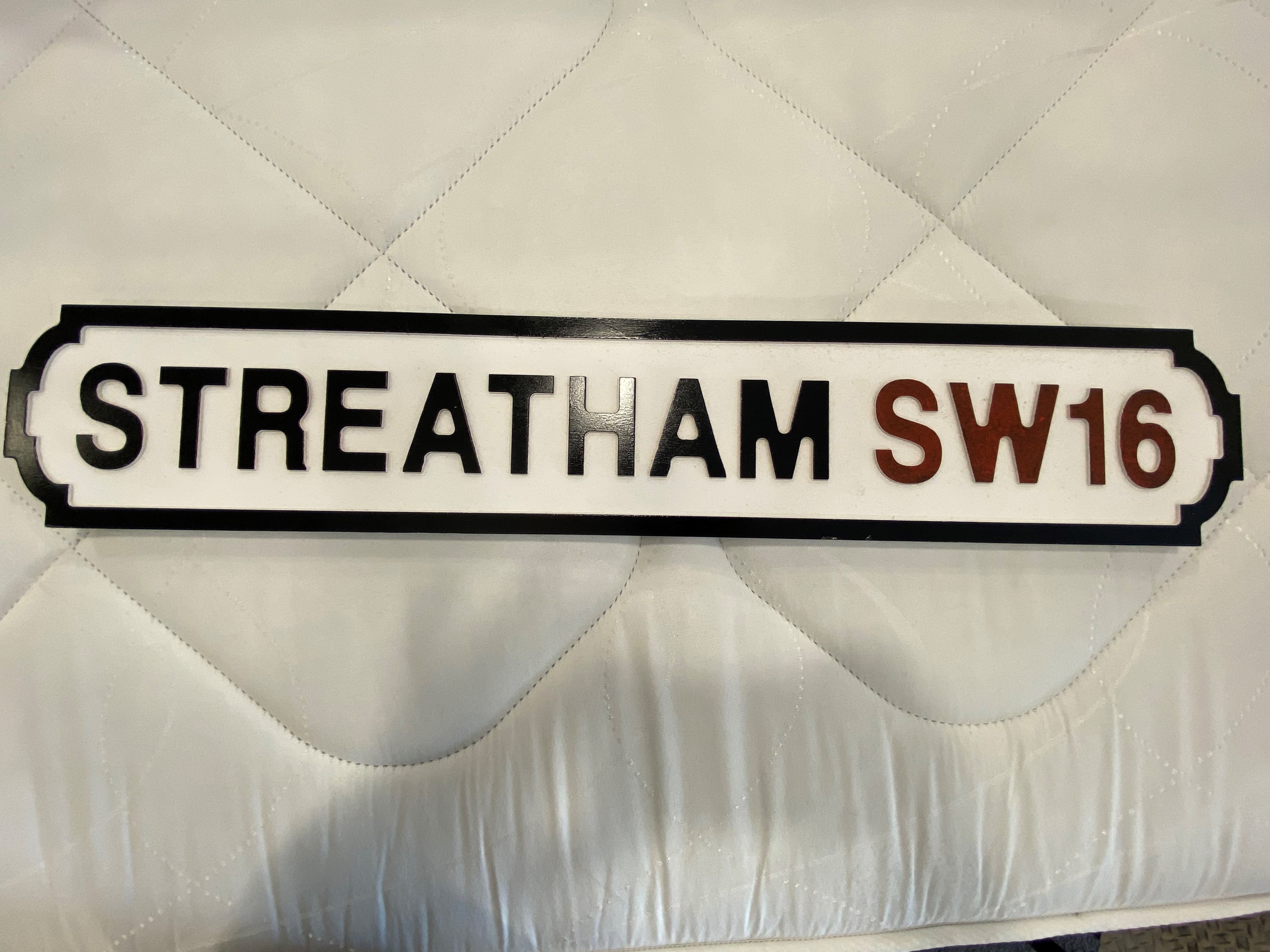 - A beautiful and original handcrafted location sign “Streatham SW16” made from cedar wood