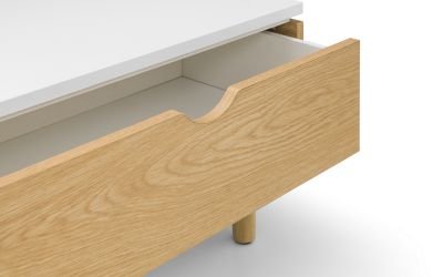 - The Timer Coffee Table offers a functional design with a lift-up mechanism with storage space inside, as well as a pull-out drawer with stunning recessed handles. Finished in a high gloss white and oak with tapered legs, this contemporary coffee table is sure to be the statement piece of any living area.