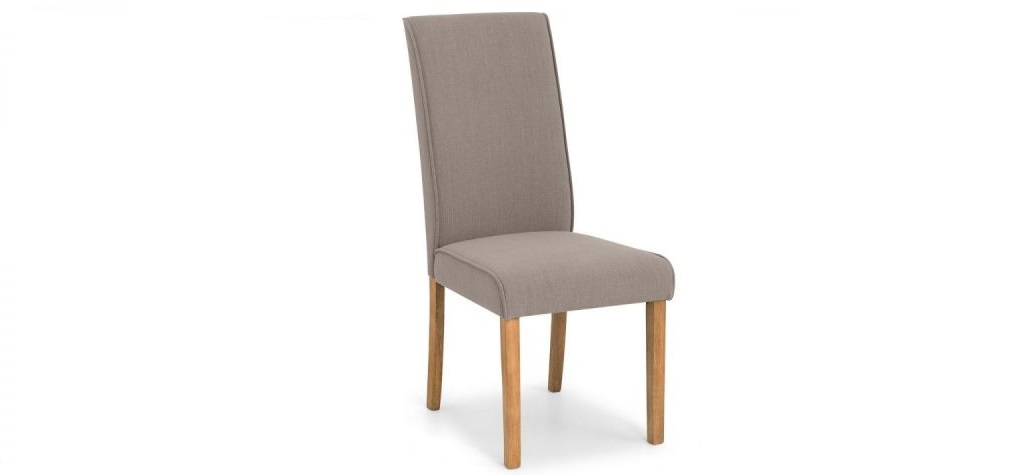 - The Ville dining chair is upholstered in a taupe linen effect fabric, bringing class to your dining area. Crafted from a hardwood frame with foam and fabric upholstery, this dining chair provides maximum comfort around the dinner table. Featuring oak coloured legs